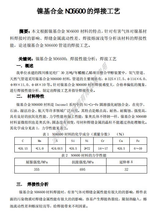 镍基合金N06600的焊接工艺